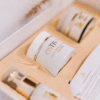 Les 4 produits de la routine de soins Ostium dans un coffret luxe. Un cadeau idéal pour les fêtes.
